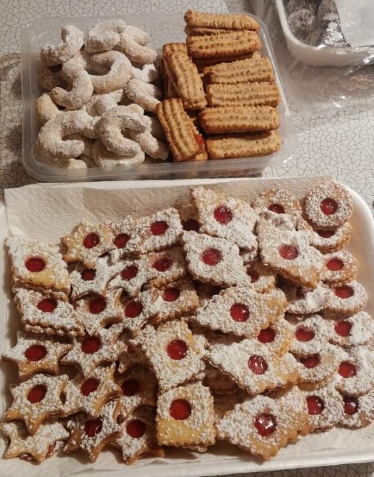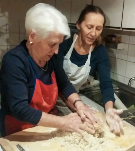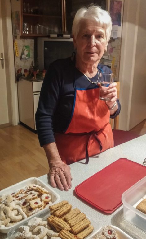 Margarete hat die beiden auch gleich in die Geheimnisse ihrer Backkunst eingeweiht. Manchmal kann man gut drei Hände brauchen 😉